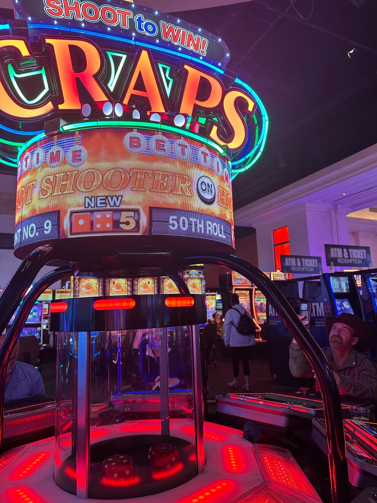 (For those thinking about playing REAL money at a casino–for anything other than something like entertainment like going to a movie–and/or other than a couple hundred bucks–please don’t. Given consistent play at ANY casino, you will NEVER win; the odds on EVERY game are against you. Slots are the worst. Yes there is ‘luck’ and a few ‘lucky’ people. But you ain’t one of them. The mathematics are simple. The closest odds games are craps and blackjack; you will typically lose around 20-100 dollars per thousand at blackjack and 10-100 dollars at craps per thousand which has the most even money odds playing the pass line–it’s not unity but perhaps 98-99 percent. Meaning that you can play for hours on 50 bucks at a 1-dollar craps game. And everyone has a ‘system’ that doesn’t work)